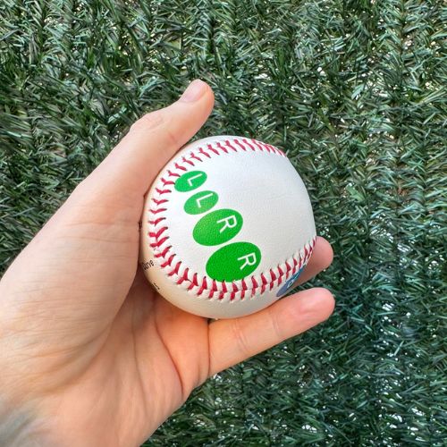 The Pitch Training Baseball is a specially designed ball that features printed finger placement marks to teach beginners and young players how to grip and throw different types of pitches correctly.